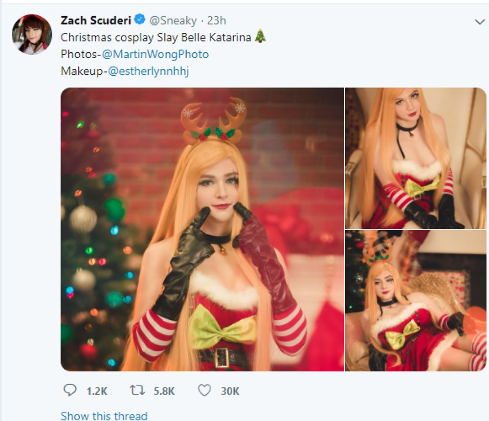 นี้ก็ถือว่าเป็นอีกหนึ่งตัวอย่างผู้ประสบความสําเร็จในวงการ Esport ของผู้เล่นจากทีม Cloud9 อย่าง Sneaky ในเกม League of Legends ที่นอกจากจะทำให้การเล่นเกมเป็นอาชีพของตัวเองอย่างแท้จริงได้เลย เจ้าตัวยังหางานอดิเรกมาสร้างรายได้ให้กับตัวเองเพิ่มเติมอีกด้วย โดยก่อนหน้านี้เจ้าตัวเคยแต่ง Cosplay เป็นตัวละครสาวๆ ในเกม League of Legends  มาแล้ว และก็ทำให้ใครหลายคนหลงคิดว่าเขาเป็นผู้หญิงจริงๆ จนล่าสุดเขากลับมาอีกแล้วกับชุด Christmas Cosplay ที่บอกเลยว่าแซบกว่าครั้งก่อนๆ ที่เคยทำออกมาเลยทีเดียว