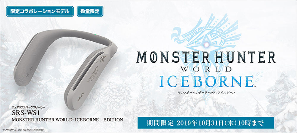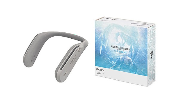 และชิ้นสุดท้ายกับลำโพงยี่ห้อง Sony รุ่น SRS-WS1/ICB ที่มาในรูปแบบสีออกเทาๆ ซึ่งดีไซน์มาให้สวมไว้ที่คอ และสามารถฟังเสียงภายในเกมได้อย่างมีอรรถรส อีกทั้งยังมีระบบไร้สาย หรือจะเสียบสายก็ได้ ที่สำคัญแบตเตอรี่ใช้งานนานสูงถึง 7 ชั่วโมง มาพร้อมกับดีไซน์ที่ออกแบบสำหรับเกม Monster Hunter World: Iceborne โดยเฉพาะ สนนราคาของลำโพงคล้องคอตัวนี้อยู่ที่ 2,9380 บาท หรือประมาณ 8,810 บาท