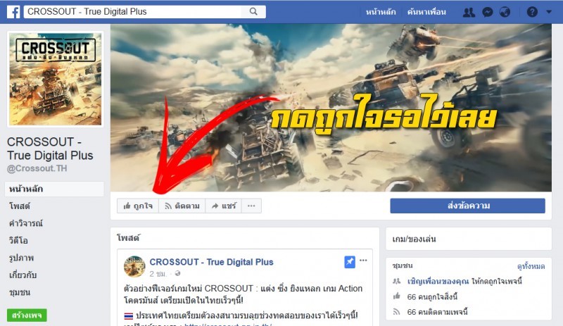 1. กดเข้าร่วมเป็นแฟนเพจ CROSSOUT