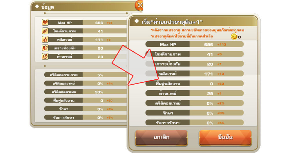 **อุปกรณ์+0 กับ +10 เมื่อกดแปรธาตุแล้ว จะได้สถานะเท่ากัน