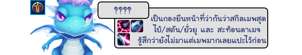 [นักรบ/?⋆?] ???? : ตัวเปิดที่ใครก็รัก มีทั้งสกิล "ไบ้และสตัน" ในตัวเดียว ยังไม่จบ!! เค้ามีสกิลยั่วยุ,ลดความเสียหายพร้อมทั้งสะท้อนความเสียหายกลับไปอีกด้วย น่าเสียดายว่าในแพทเปิดตัว ยังไม่สามารถหามาครองได้ ซึ่งถ้ามาแล้ว รีบๆ เอามาปั้นเลย