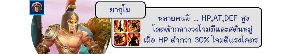 [นักรบ/⋆⋆⋆] ยากุโม : ตัวยืนหน้าตาโหด พอๆกับความสามารถ ยามใกล้ตายจะโจมตีได้แรงมาก (จากผลของสกิล4) เขาสามารถกระโดดเข้ากลางวงสร้างความมึนงง และทำดาเมจได้เป็นอย่างดี ส่วนสกิลป้องกัน-เสริมทีม ... ไม่มีนะ แค่สตันก็พอแล้วมั้ง (หลายคนได้มาตอนเริ่มเกม)