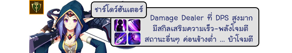 [โจมตี/⋆⋆] ชาช่า : Passive โจมตีปกติหลายเป้าหมายโดยลดความแรงลง โดยรวมแล้ว DPS ยังต่ำกว่าชาร์โดวร์ฮันเตอร์
