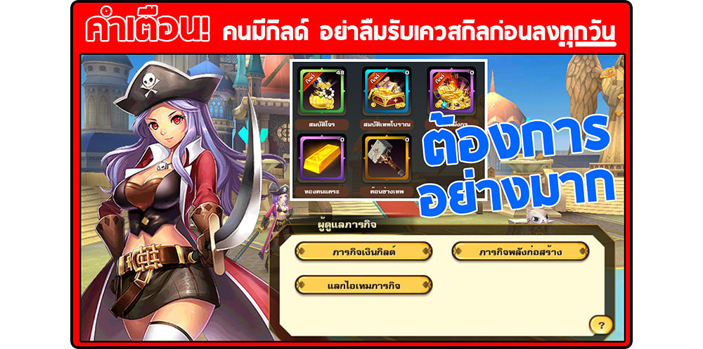 อย่าลืมเข้าไปส่ง-รับเควสกิลด์ใหม่ด้วย มิเช่นนั้นท่านอาจพลาดไอเทม "สมบัติ" สำหรับส่ง-แลกแต้มเงินกิลด์