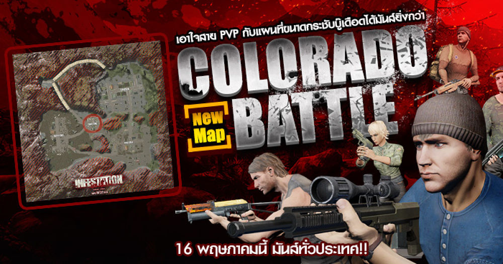 อัพเดทใหม่ล่าสุดเอาใจคอเกม Infestation จากค่าย electronics extreme เพิ่มแผนที่แนวใหม่เอาใจสาย PVPกับแมพ Colorado ฉบับ Mini ไซส์ขนาดเล็ก!บู๊เดือดได้มันส์ยิ่งกว่า! ไม่ต้องโหลดแมพเยอะ เล่นได้แม้คอมไม่แรง อยากปะทะร็อกกี้เมื่อไหร่ก็เข้ามาบวกได้ตลอดเวลาเจอกัน 16 พฤษภาคมนี้ มันส์ทั่วประเทศ!!