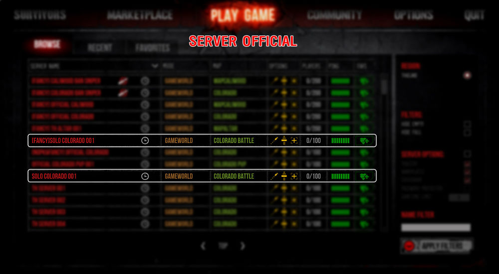 - Sv. Official ชื่อห้อง "Solo Colorado 001 " (ตายของตกปกติ) และ "[FANCY] Solo Colorado 001" (ตายของไม่ตก) - แผนที่นี้แยกจากแมพ Colorado ทั่วไปไม่สามารถใช้จุดเกิดร่วมกันได้