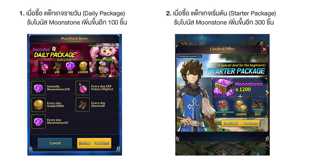 ► สิทธิิ์พิเศษ! สำหรับลูกค้า AIS เพียงซื้อไอเทมแพ็กเกจรายวันและแพ็กเกจเริ่มต้น ที่ Google Play Store ผ่านระบบ AIS ได้รับโบนัส Moonstone เพิ่ม!