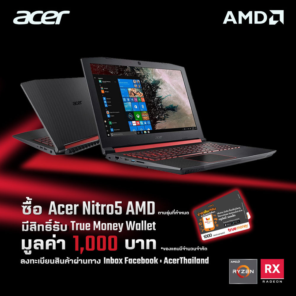 แฟน AMD จัดไป! ซื้อ Acer Nitro 5 AMD Shale Black วันนี้รับไปเลยบัตร True Money ไปเลย