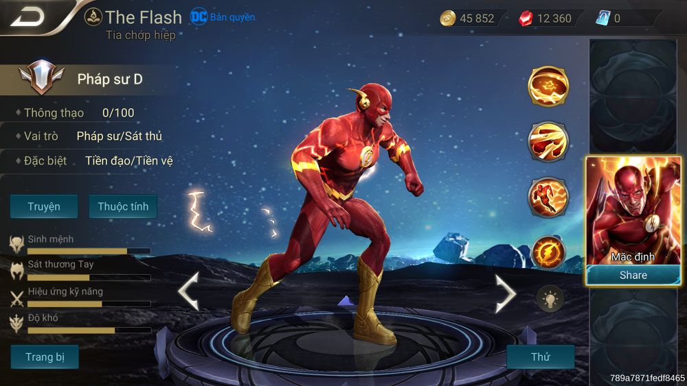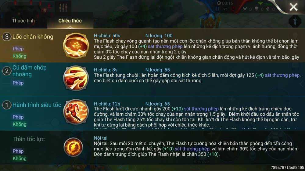 - The Flash วิ่งเป็นวงกลมอย่างรวดเร็ว สร้างพายุขนาดเล็ก ทำความเสียหายเวทรอบๆพายุ ครั้งละ 100 / 150 / 200 และไม่ได้รับดาเมจใดๆเลย 2 วินาที