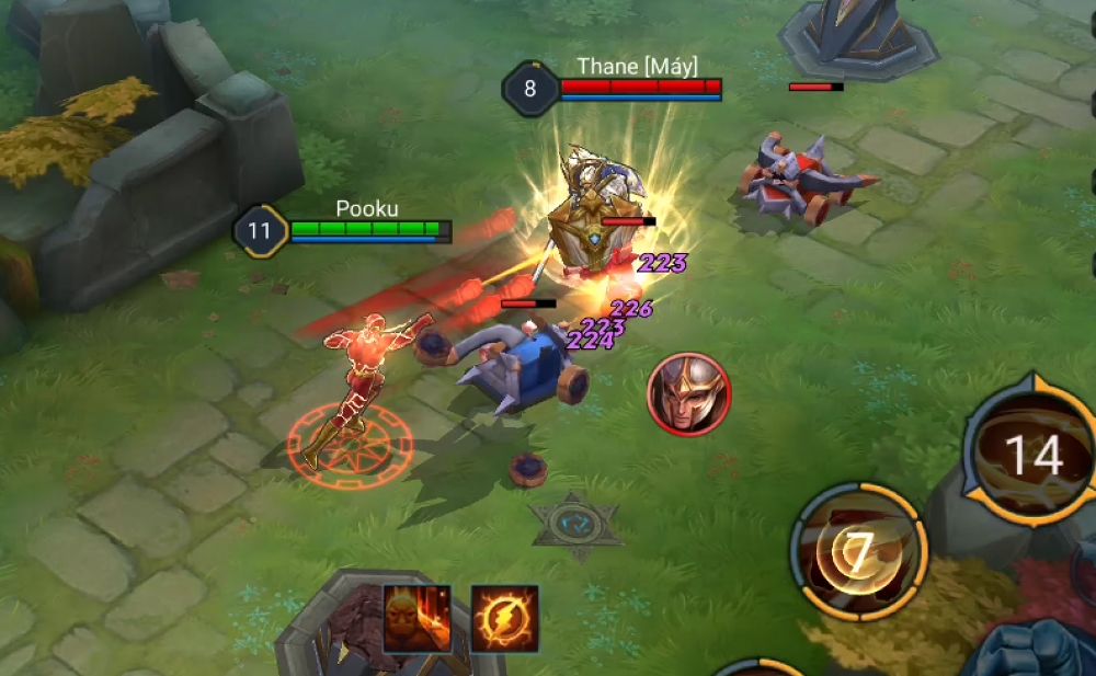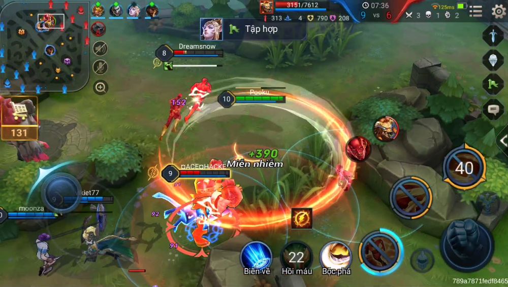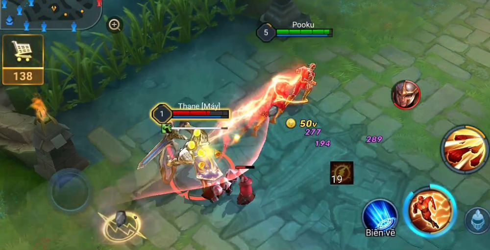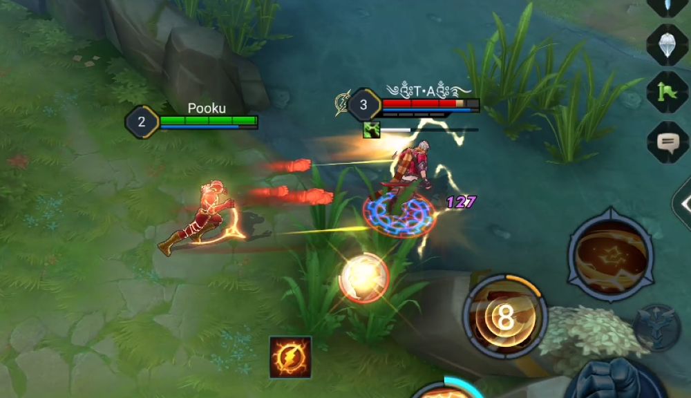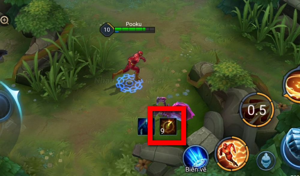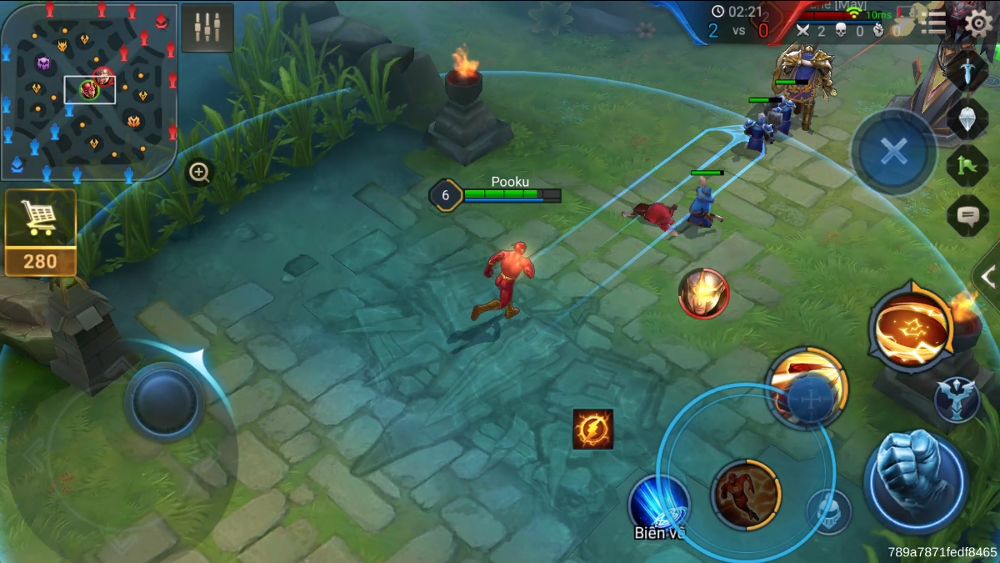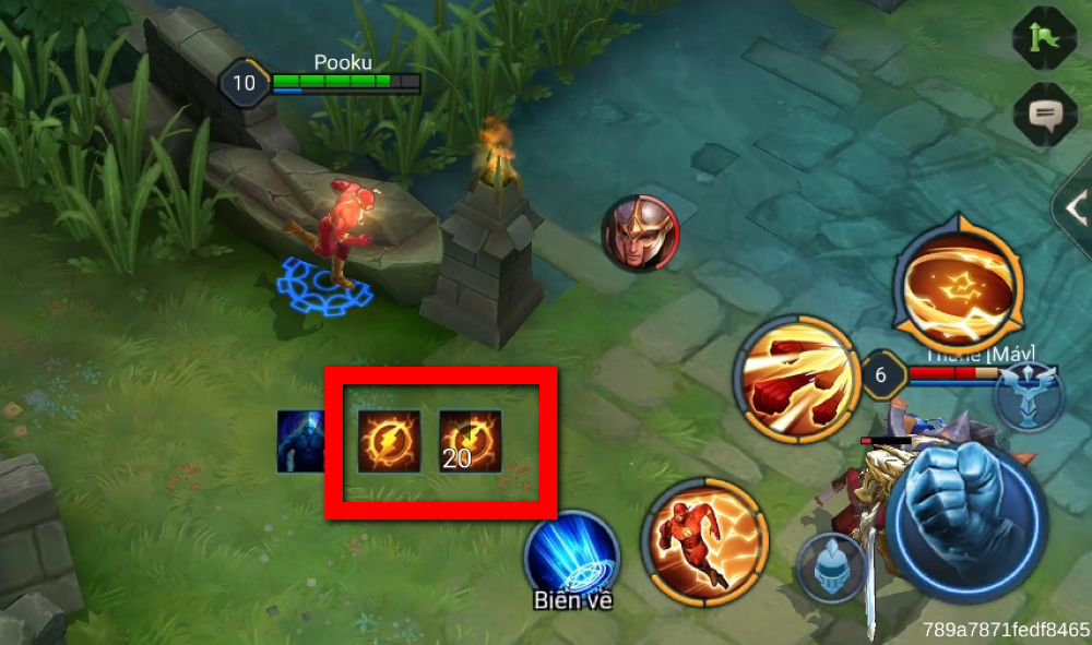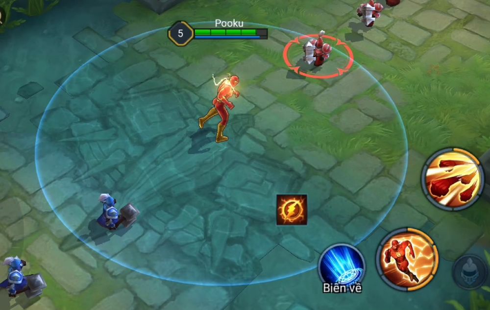 - กดใช้อีกครั้งในระยะเวลาที่กำหนด ( ประมาณ 5 วินาที ก่อนคูลดาวน์) The Flash จะวิ่งกลับมายังจุดที่ทิ้งสัญลักษณ์ไว้ เมื่อผ่านศัตรูในเส้นทางจะสร้างความเสียหายเวท 250 / 300 / 350 / 400 / 450 /500