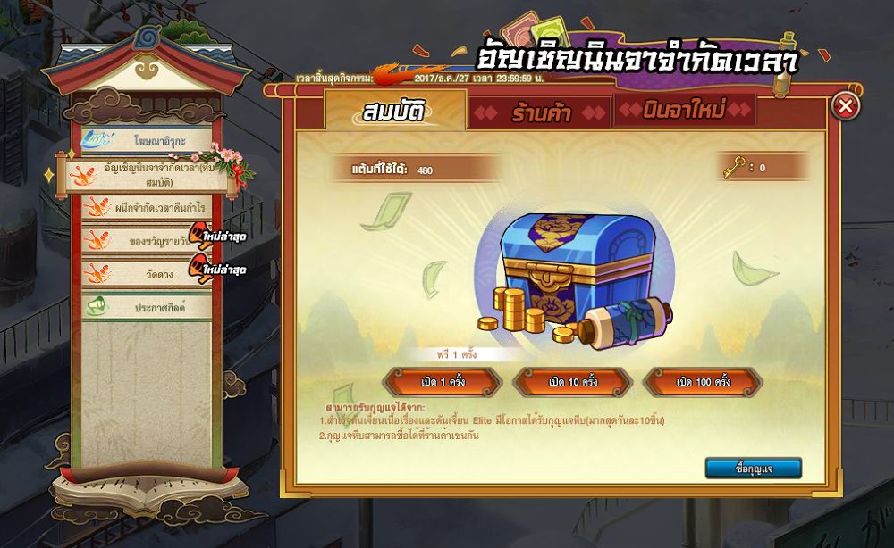 - เปิดคัมภีร์ผนึก ครบ 100 ชิ้น จะได้ คัมภีร์ผนึก (7วัน) 4 ชิ้น