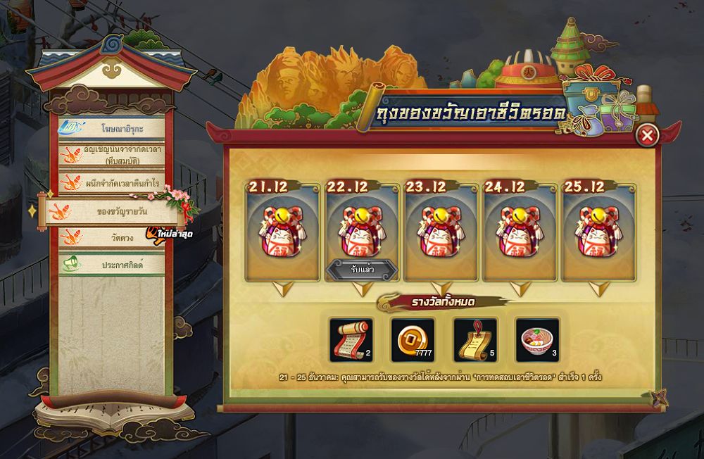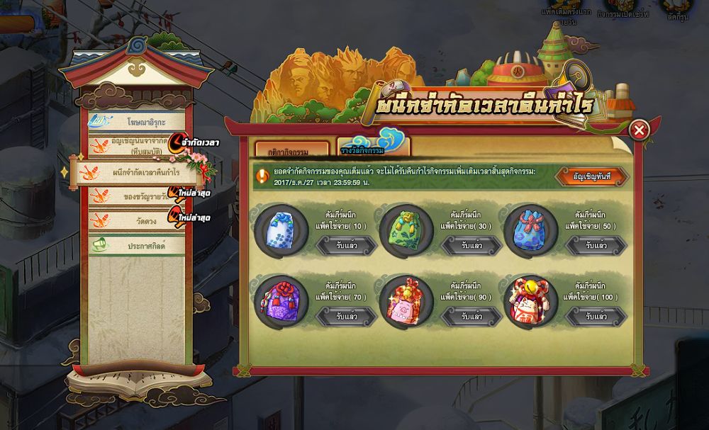 - เปิดคัมภีร์ผนึก ครบ 50 ชิ้น จะได้ คัมภีร์ผนึก (7วัน) 3 ชิ้น