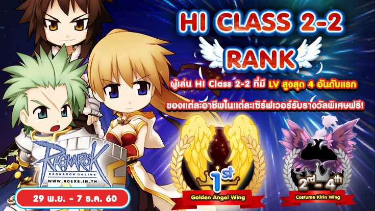 มาแล้วจ้า~ มาแล้ว Ragnarok Online Thailand และ ค่าย Electronics Extreme เตรียมอัพเดทสายอาชีพ Hi Class ทั้ง 7 อาชีพ ในคลาส 2-2 สำหรับใครที่กำลังตั้งหน้าตั้งตาเก็บเวลรอกันอยู่ 29 พฤศจิกายน 2560 นี้ สิ้นสุดการรอคอย พร้อมมันส์แน่นอน! ซึ่งแต่ละสายอาชีพจะมีจุดเด่นแบบไหนกันบ้าง มาดูกันเลย >__<