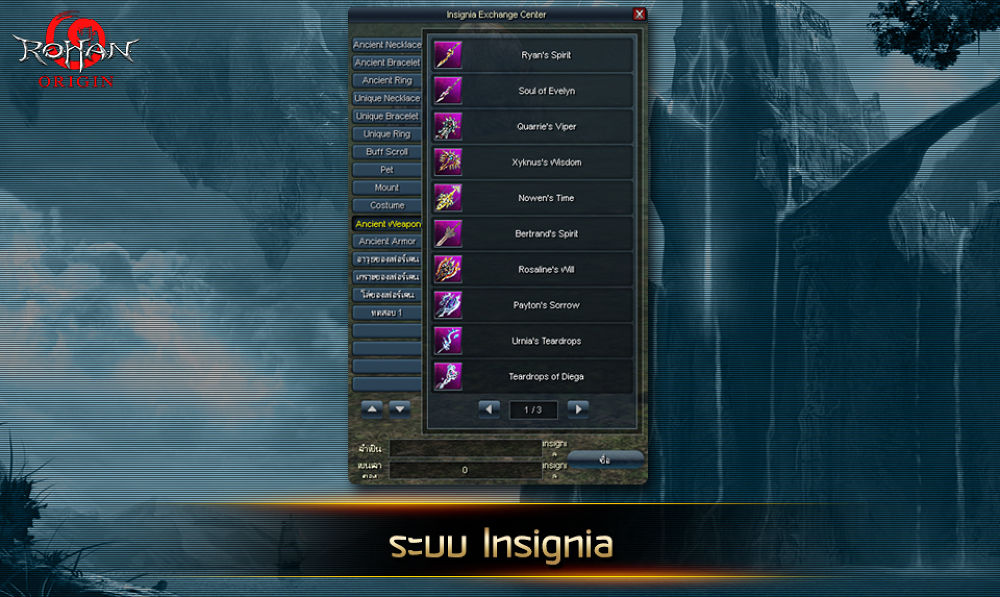 ระบบดี Insignia เป็นระบบที่มีใน Rohan Origin เท่านั้น ผู้เล่นสามารถตามหาไอเทมที่ชื่อว่า Hero’s Insignia มาแลกไอเทมดีๆ ได้ โดยการดรอปจากมอนสเตอร์ หรือ จากภารกิจต่างๆ นั่นเอง ต้องบอกเลยว่าไอเทมที่อยู่ใน Insignia Exchange Center นั้นมีของดีๆ ให้เลือกสรรมากมาย