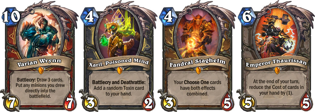 น่าจะเป็นลีเจนท์ที่ดีที่สุดในซอง WoG เลยก็ว่าได้กับการซัมมอนมินเนียนติด Deathrattle ที่ตายไปไปแล้วกลับมาอีกครั้ง (เป็นเหตุผลหนึ่งให้ Cairne Bloodhoof ฮิตขึ้นที่กล่าวไว้ข้างต้น) เป็นมินเนียนที่ยืดหยุ่นกับการใส่ในเดคหลากหลายฮีโร่ไม่ว่าจะ Rogue,Paladin,Priest,Warlock หรือ Druid