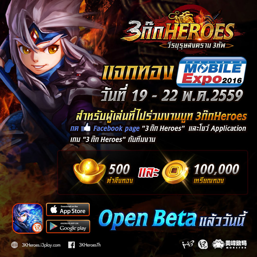 “3 ก๊ก Heroes” วีรบุรุษสงคราม 3 ทัพ เปิด OBTแล้ววันนี้ พร้อมยกขบวนแจกไม่อั้นในงาน Thailand Mobile Expo 19-22 พ.ค. ณ ศูนย์ฯสิริกิติ์