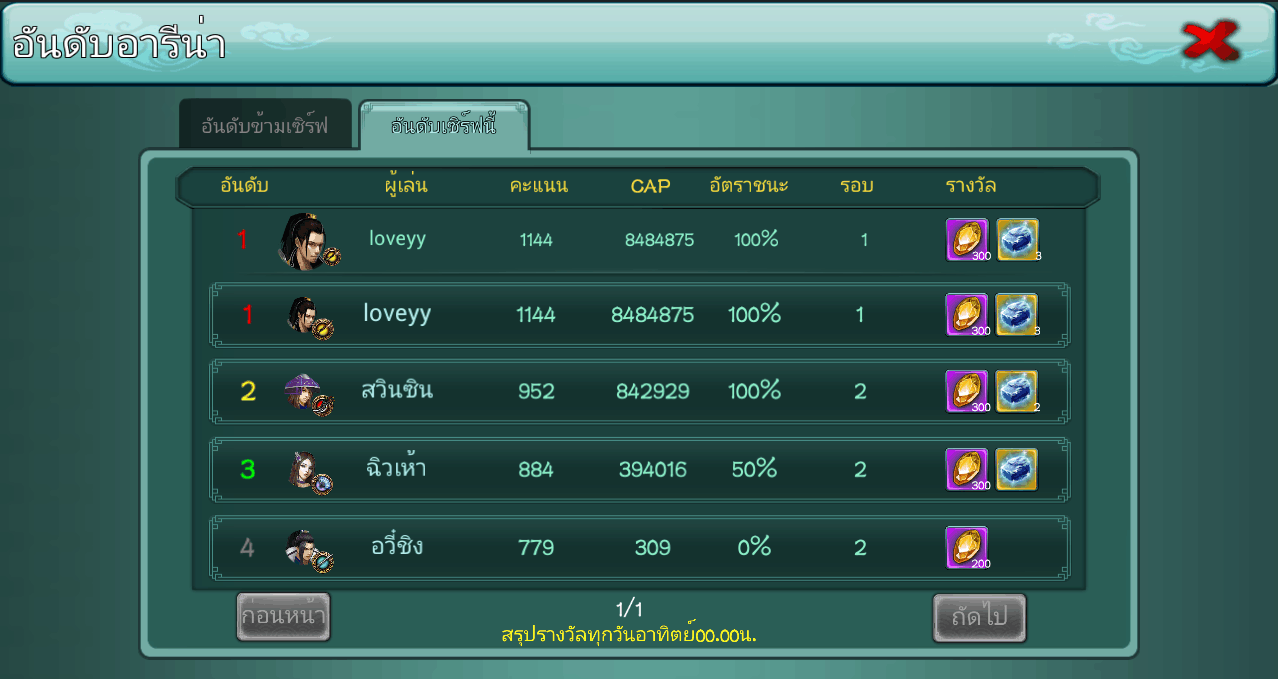 รายละเอียดการอัพเดต V 1.21.2 ฝึกซ้อมจอมยุทธ์ - เพื่อให้ผู้เล่นในช่วงแรกพึ่งพาจอมยุทธ์เพื่อข้ามด่านยากได้ง่ายขึ้น1.3 ลานประลองเดี่ยวข้ามเซิร์ฟเวอร์ในเวอร์ชั่นนี้มีการประลองข้ามเซิร์ฟเวอร์ ให้ผู้เล่นได้แสดงวิทยายุทธ์ให้ประจักรข้ามเซิร์ฟกันเลยทีเดียว ส่วนการจับคู่ประลองนั้น ระบบจะทำการจับคู่ให้ผู้เล่นอัตโนมัติ เมื่อประลองเสร็จติดอันดับตารางจะได้รับนามด้วย จอมยุทธ์ลี้ซุ่นเฉิน - จอมยุทธ์ท่านนี้มาจากครอบครัวที่ยากจน แต่มีความรู้กว้างขวาง วรยุทธ์ยอดเยี่ยม สู้ทั้งชีวิตเพื่อบ้านเมือง เป็นคนซื่อตรง จิตใจกว้างใหญ่ รับหน้าที่แม่ทัพเรือในขณะที่บ้านเมืองเจอวิกฤต ต่อให้ตายในสนามรบ ก็ไม่เคยเสียใจจอมยุทธ์ชอลิ้วเฮียง งามสง่ารวยเสน่ห์ เป็นที่น่าอิจฉาสำหรับผู้ชายในยุทธภพหรือแม้กระทั่งผู้หญิง เมื่อสิบปีก่อนหล่อยังไง สิบปีหลังก็ยังหล่อเช่นเดิม ไม่มีใครรู้อายุเขา เมื่อมาเจอกับหอมจันทรา ความลับนี้เลยกลายเป็นความลับในยุทธภพ และกลายเป็นตำนานหลังจากอัพเดตเวอร์ชั่น1.2 ไป ทีมงานจะทำการเปิดเซิร์ฟเวอร์ S11-เฉียวฟง ต่อกันเลยในวันที่ 23 กันยายนน้าา เวลาและกิจกรรมเปิดเซิร์ฟเวอร์ติดตามได้ในเฟสบุ๊คแฟนเพจนะ อย่าพลาดเชียว !!