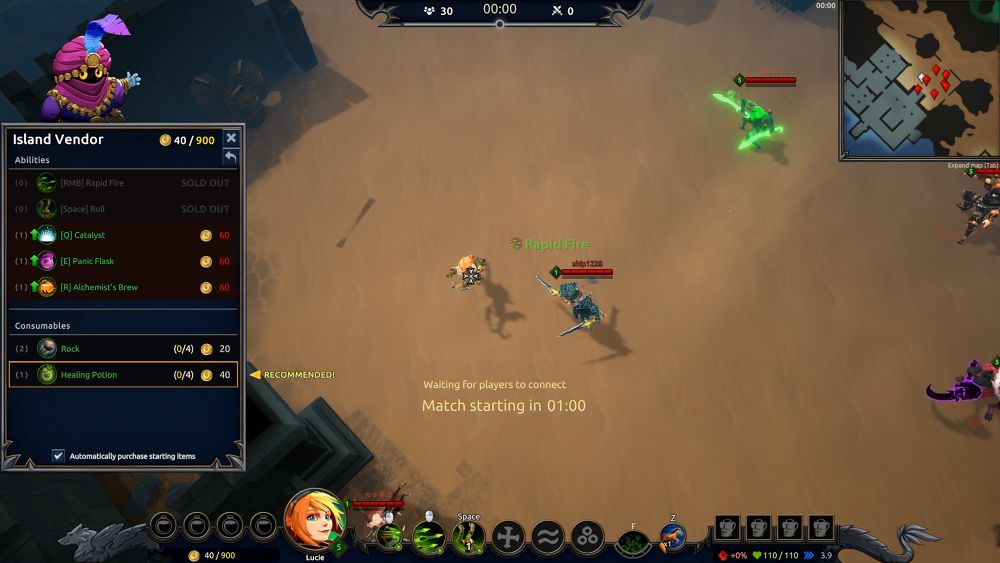 สิ่งที่ทำให้เกมนี้ได้รับกลิ่นอาย MOBA มาเต็มๆ นั่นคือเกมนี้จะเป็น Battle Royale แบบให้เราเน้นโชว์ทักษะการควบคุมตัวละคร และการต่อคอมโบสกิลต่างๆอย่างถูกสเตป รู้ว่าจังหวะไหนควรใช้สกิลอะไร ไม่ใช่การสาดมั่ว ไม่อย่างนั้นคุณตายแน่นอน แต่ที่มันท้าทายกว่าด้วยความที่เป็น Battle Royale คือปกติเกม MOBA เขาจะคลิกไปที่ตัวศัตรูแล้วโจมตีได้เลย แต่เกมนี้เป็นแบบ Non-Lock Target นั่นคือเราต้องกะจังหวะ เล็งทิศทางสาดสกิลเอาเอง เรียกได้ว่าวัดฝีมือไม่ต่างจาก Battle Royale ที่ใช้ปืนยิงกันเลยทีเดียวครับ