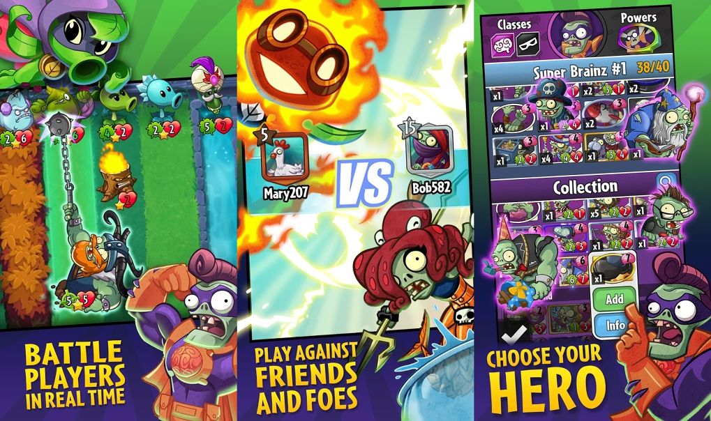 แนวเกม : Puzzleจุดเด่น : พืชปะทะซอมบี้แบบ onlineEA บริษัทผู้พัฒนาเกมยักษ์ใหญ่คิดว่าคงไม่สนุกนักหากจะเล่นเกมนี้เพียงคนเดียว เลยจัดการทำภาคออนไลน์เต็มรูปแบบมาให้เลยกับ Plants vs Zombies Heroes ที่จะให้คุณต่อสู้กับผู้เล่นของจริงตัวเป็น ๆ แบบ Real time วัดกันไปเลยว่าใครสมองไวมากกว่ากัน โหลดไปกระตุ้นสมองกันได้เลย!