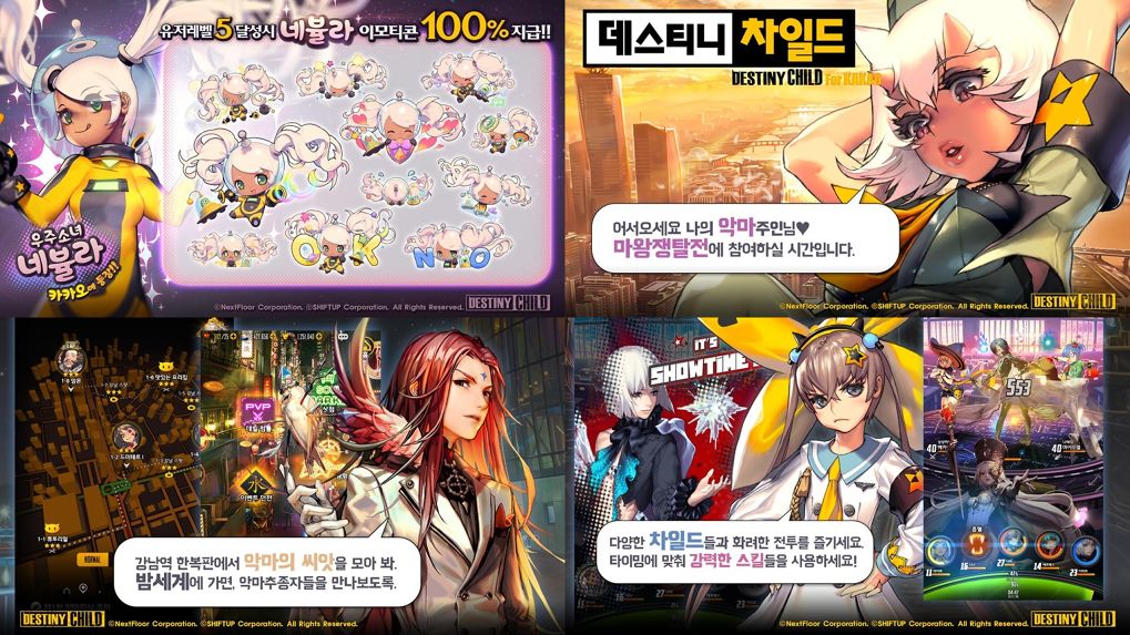 แนวเกม : RPGจุดเด่น : ArtworkDestiny Child Moblie เป็นเกม Card Combo Turn base Action Live 2D จากผลงานการออกแบบตัวละครของ Kim Hyung Tae ที่เคยสร้างความประทับใจมาแล้วกับเกม Blade&soul , Magna carta, War of genesis และอื่นๆ