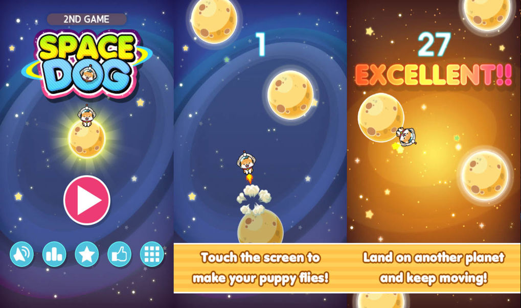 เกม Arcade เล็กๆ ที่เล่นแล้วขวนอารมณ์ดีไปกับเจ้าหมาน้อยน่ารักสารพัดชนิด ที่จะพาเรากระโดดไปยังห้วงอากาศอันกว้างใหญ่ กับเกมที่เล่นง่ายๆ เพียงแค่กะจังหวะเพื่อดีดเจ้าหมาน้อยออกไปยังดาวดวงใหม่เรื่อยๆ ให้ได้ไกลที่สุด และเก็บกระดูกระหว่างทางไปด้วยเพื่อเอาไว้ปลดล็อกไอเทมต่างๆ