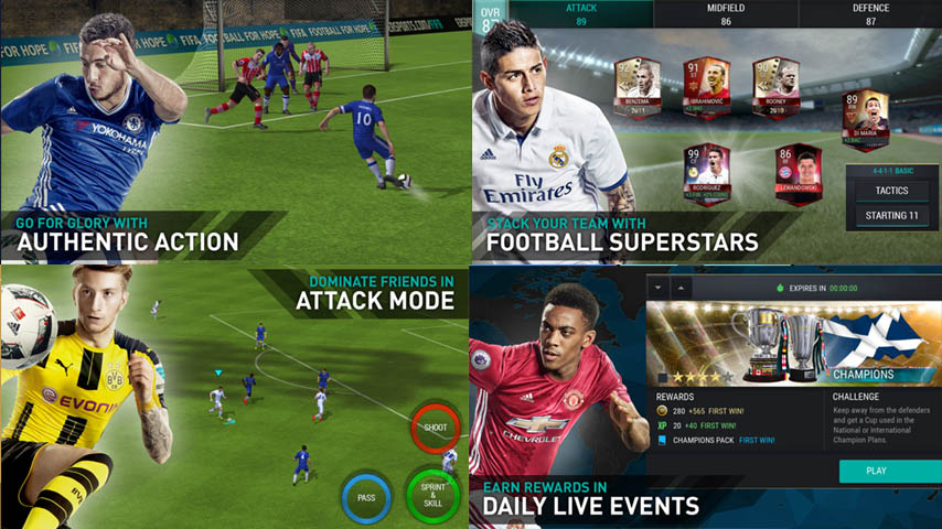 เกม FiFa ในแบบฉบับของมือถือ ที่สามารถพกพาไปเล่นที่ไหนก็ได้ โดยผู้เล่นสามารถรวบรวมเหล่านักกีฬาที่ชื่นชอบจากสโมสรต่างๆ และจัดทีมในฝันขึ้นมา พร้อมกับออกเตะไปในลีกต่างๆ ที่มีอยู่มากมายเลยล่ะครับ อีกทั้งยังมีมินิเกมสนุกๆ ให้เล่นเพื่อเก็บ exp หรือฝึกฝนทีมของเราได้ด้วย ใครที่เป็นสาวกลูกหนังล่ะก็โหลดมาเล่นกันได้เลยครับรับรองไม่ผิดหวัง