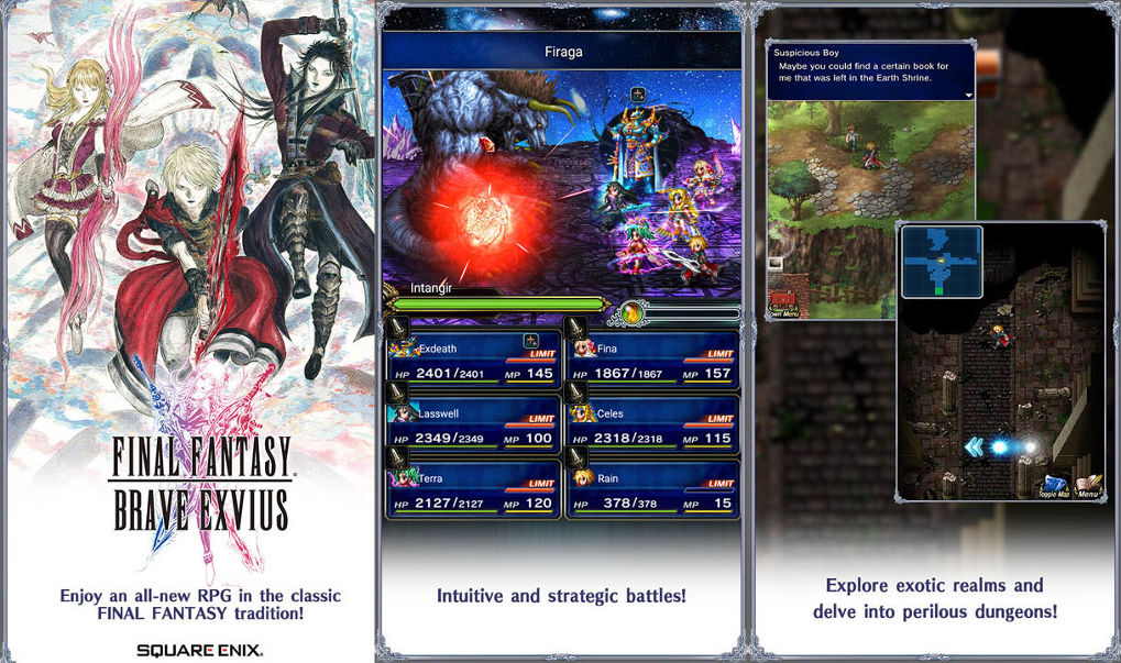ประเภท : Strategy RPG จากสุดยอดเกม RPG ที่ทุกคนคุ้นเคย กลับมาอีกครั้งกับทีมงาน ฝีมือการพัฒนาเดียวกันกับเกม Brave Frontier ที่ได้มาจับมือกับ Square Enix และได้ให้กำเนิดเกม Final Fantasy Brave Exvius นี้ขึ้นมาครับ โดยตัวเกมนั้นจะมีรูปแบบการเล่นแบบ Turn Base Strategy RPG และมีกราฟิกในแบบเกมยุคก่อน ที่หลายๆคนน่าจะชื่นชอบกันเพราะทำให้ได้บรรยากาศของเกม Final Fantasy ในภาคเก่าๆนั่นเองครับ