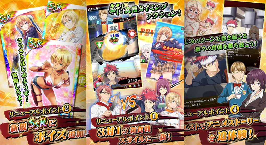 Shokugeki no Soma Saikyou no Recipe Okawari !! เป็นเกมแนว Action ทำอาหารที่มีเนื้อเรื่องตามที่การ์ตูนได้ดำเนินมา ในเกมมีการต่อสู้การทำอาหารแบบ 3 ต่อ 1 ซึ่งตัวละครในเกมจะมาพร้อมเสียงพากย์ประจำตัวที่แสนคุ้นเคย อีกทั้งเราจะได้พบกับเนื้อเรื่องในอนิเมะผ่านการทำเควสในเกมอีกด้วย ! โดยการแข่งขันทำอาหารของเกมนี้จะมาในรูปแบบ Timing Action ที่เราจะต้องกด Tap หรือ Flick ต่อเนื่องเป็นคอมโบ (ดูรายละเอียดเพิ่มเติมได้ที่นี่)