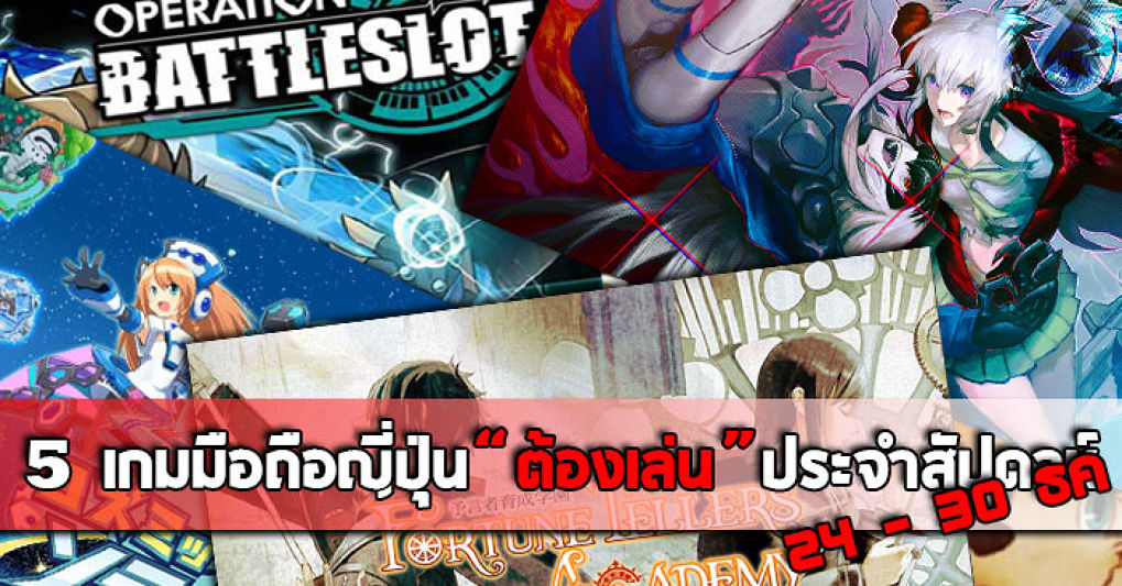 ใกล้ปีใหม่เข้าไปทุกที เกมใหม่ ๆ ก็ออกมาไม่ขาดสาย ยิ่งเป็นที่ญี่ปุ่นด้วยแล้ว เกมบนมือถือถือเป็นแพลตฟอร์มยอดนิยมที่ทางค่ายต่าง ๆ รีบเปิดตัวเกมของตนให้ทันในวันหยุดยาวนี้ให้ได้ เพราะช่วงวันหยุดยาวถือเป็นช่วงที่เหล่านักเล่นเกมทุกคนจะได้พักจากการทำงาน และการศึกษาที่เหน็ดเหนื่อยมานั่งกดเกมเล่นกันอย่างบ้ากะหน่ำ โดย " 5 เกมมือถือญี่ปุ่น " ต้องเล่น " ประจำสัปดาห์ " นี้จะมีเกมไหนถูกใจเพื่อน ๆ ตอนสิ้นปีนี้บ้างมาดูกัน !!! (5 เกมญี่ปุนในสัปดาห์ที่แล้ว)