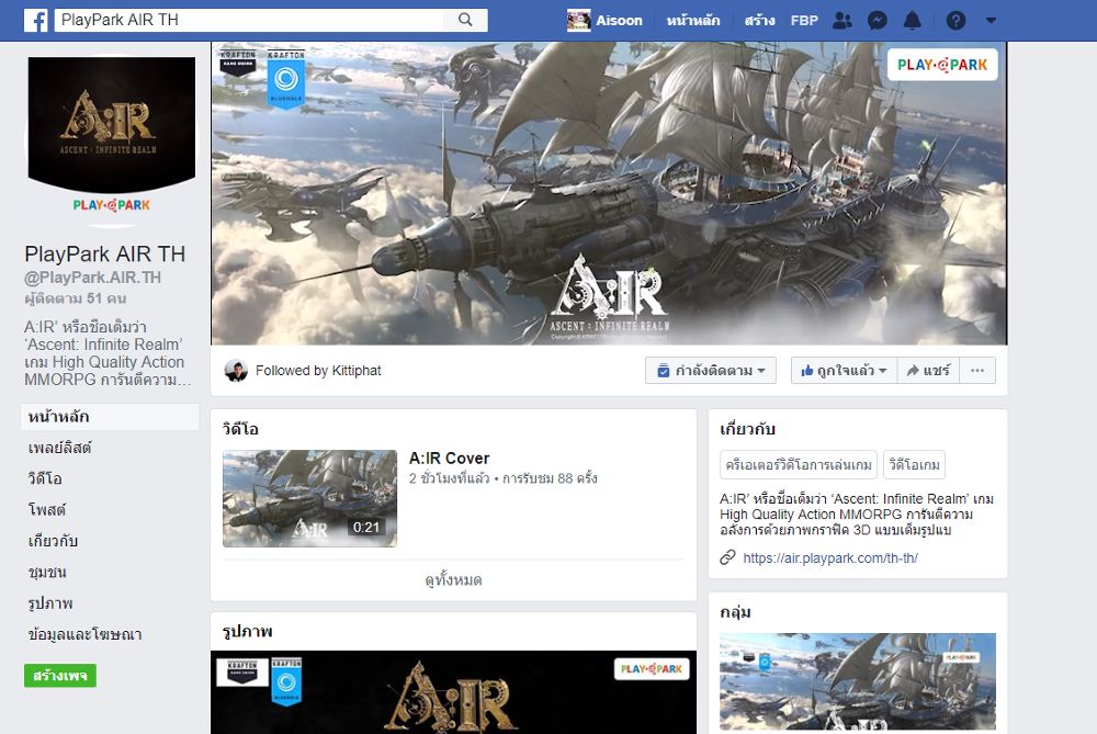 โดยความคืบหน้าล่าสุดของทาง Play Park เจ้าของลิขสิทธิ์เกม A:IR ในไทยอย่างเป็นทางการ ก็ได้ทำการเปิด Facebook Fanpage ของตัวเกมแล้วในวันนี้
