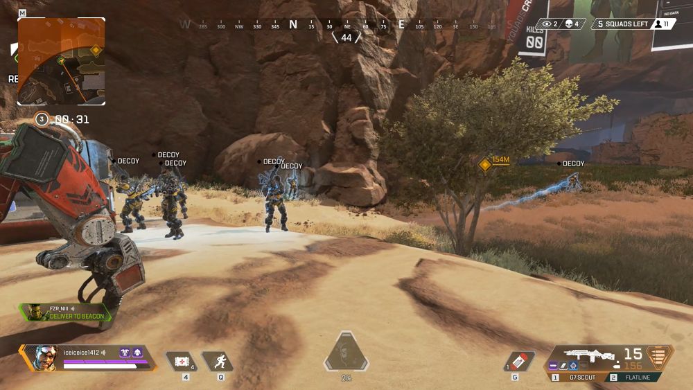 เทคนิคและข้อควรระวังในการใช้สกิลนี้ : สกิลนี้ถือเป็นไม้เด็ดของลีเจนด์คนนี้เลยก็ซ่าได้ครับ โดยเฉพาะเวลาที่เรากำลังจะเข้าเมืองไปฟาร์มของ หากไม่แน่ใจว่ามีคนอื่นอยู่หรือไม่ ก็ใช้สกิลนี้เช็คก่อนได้ หรือแม้แต่จังหวะยิงปะทะก็ใช้สกิลนี้เป็นตัวล่อความสนใจศัตรูไปชุบเพื่อนก็ได้เช่นกัน แต่ข้อควรระวังของสกิลนี้เลยก็คือ มันติด Object หรือวัตถุต่างๆได้โคตรง่าย ง่ายจนน่าหงุดหงิดเลยทีเดียว เช่นถ้าคุณชี้ทิศทางที่มันวิ่งไป แล้วมันไปเจอก้อนหิน หรือบันได หรือวัตถุอะไรสักอย่าง มันก็จะยืนนิ่ง ไปต่อไม่ได้แล้ว ดังนั้นก่อนใช้สกิลนี้ให้ระวังให้ดีนะครับ ว่ามีวัตถุไหนขัดขวางมันอยู่หรือเปล่า ทางที่ดีพยายามใช้ในที่โล่ง หรือสิ่งกีดขวางน้อยๆครับ