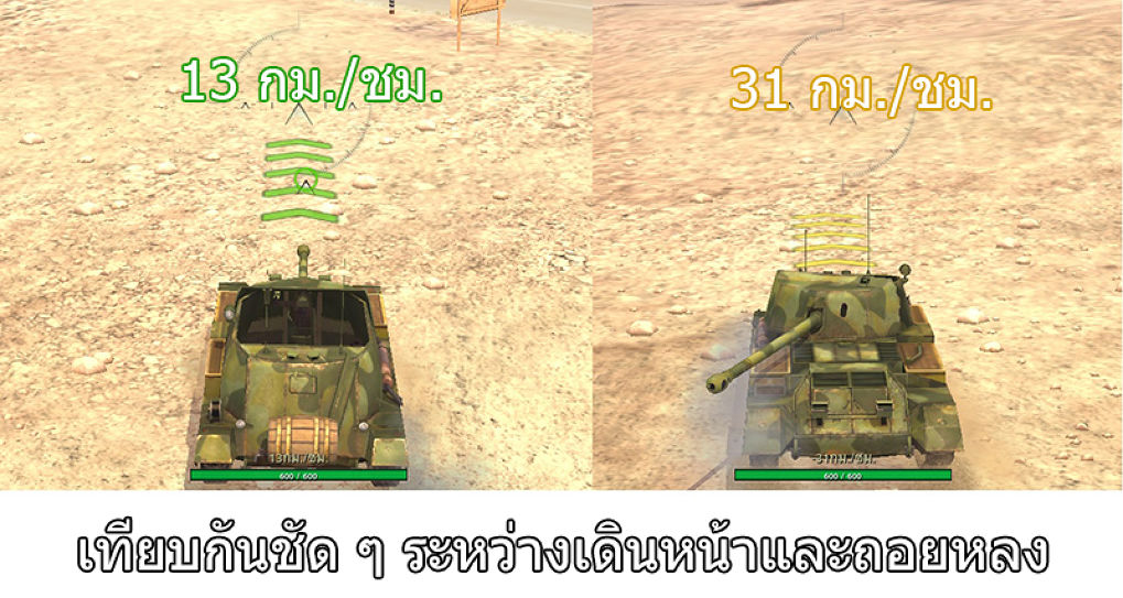 พอเอาไปเล่นจริง ๆ เจอปัญหาที่แปลกและมึนสักเล็กน้อยอย่างที่เคยกล่าวไว้ก่อนหน้าคือเวลาออกวิ่ง "อืด โค-ตะ-ระ บรม" นั้นแหละครับ วิ่งด้วยความเร็วเฉลี่ยไม่เกิน 13 กม./ชม. ในทางเรียบ หากเจอทางขึ้นเนินนี่เต่าเรียกพ่ออย่างแน่นอน กลับกันลองหันหลังวิ่งในเกมดูกลายเป็นว่า มันวิ่งได้เร็วเฉลี่ย 30 กม./ชม. ซึ่งเร็วพอสมควรเลยล่ะสำหรับรถถังคันนี้ ฉะนั้นเวลาวิ่งไปหาจุดซุ่มยิงให้ไวที่สุดก็ต้องวิ่งถอยหลังนั้นแหละ