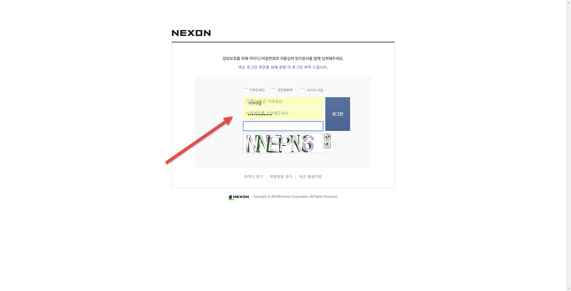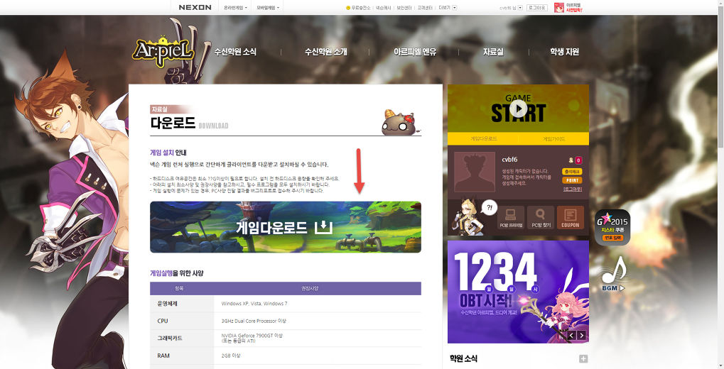 1.ขั้นตอนแรกเข้าไปที่เวปไซต์ arpiel.nexon.com จะเจอหน้าต่างเหมือนในรูปให้คลิกปุ่มที่ลูกศรชี้เอาไว้