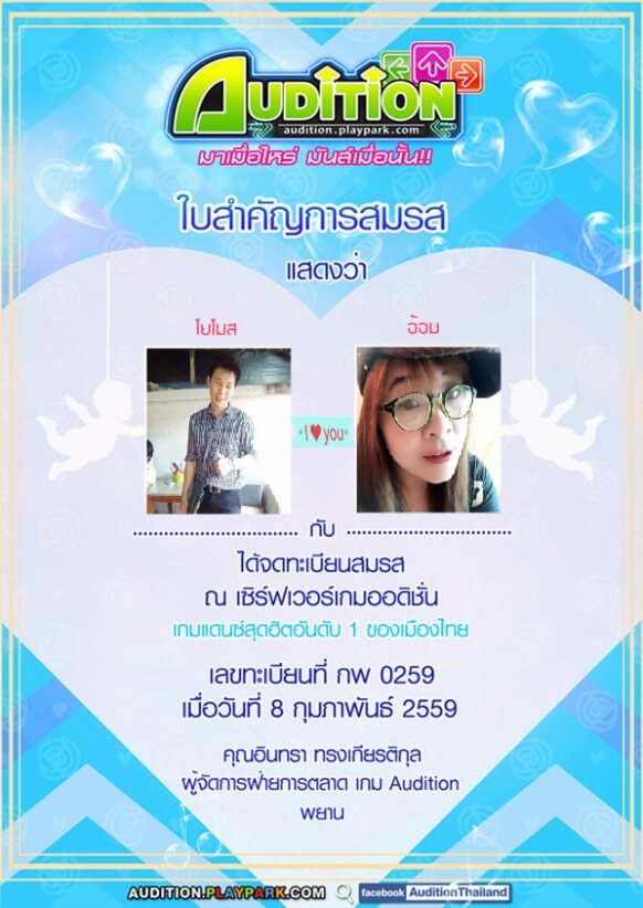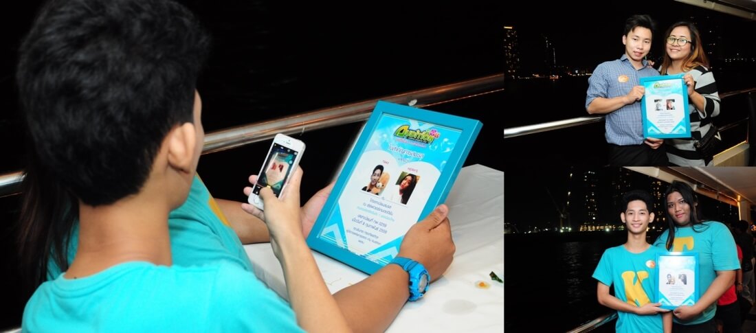 หลังจากที่ทั้งคู่ได้ลงมือรับประทานอาหารกันอย่างเอร็ดอร่อยผลัดกันป้อนอาหารและ นั่งฟังเพลงเพราๆ ดูวิวริมน้ำชิวๆ ออดิชั่นก็แอบมีเซอร์ไพร์สพิเศษให้กับทั้งคู่โดยนำทะเบียนสมรสที่ทั้งคู่ร่วมกิจกรรมใส่กรอบมามอบให้บนเรือซะเลยซึ่งทั้งคู่ก็ถูกใจและตื่นเต้นกันมากถึงกับรีบถ่ายรูปทะเบียนสมรสอัพลงโซเชี่ยลกันเลยทีเดียวแถมยังบอกทีมงานอีกว่าประทับใจกับเซอร์ไพร์สนี้สุดๆ