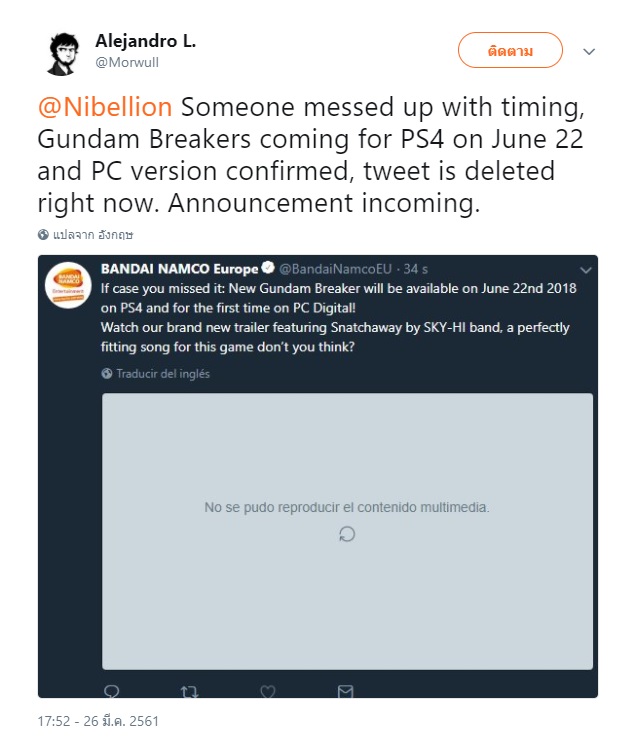 หลังจากที่อาเจ๊นัทเคยนำเสนอข่าวลือเกี่ยวกับคนไปพบการจัดเรทติ้งของเกม New Gundam Breaker ซึ่งรายชื่อเกมนี้จะวางจำหน่ายทั้งเวอร์ชั่น PC และ PlayStation 4 ทำเอาเกมเมอร์ PC หลายคนเฮลั่นจะได้เล่นเกมสุดมันส์นี้สักที ล่าสุดมีคนตาดีพบว่าทาง