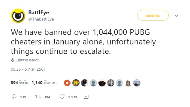 BattlEye เผยยอดผู้กระทำความผิดจากเกม PUBG ช่วงเดือนมกราคมทะลุ 1 ล้านคนแล้ว