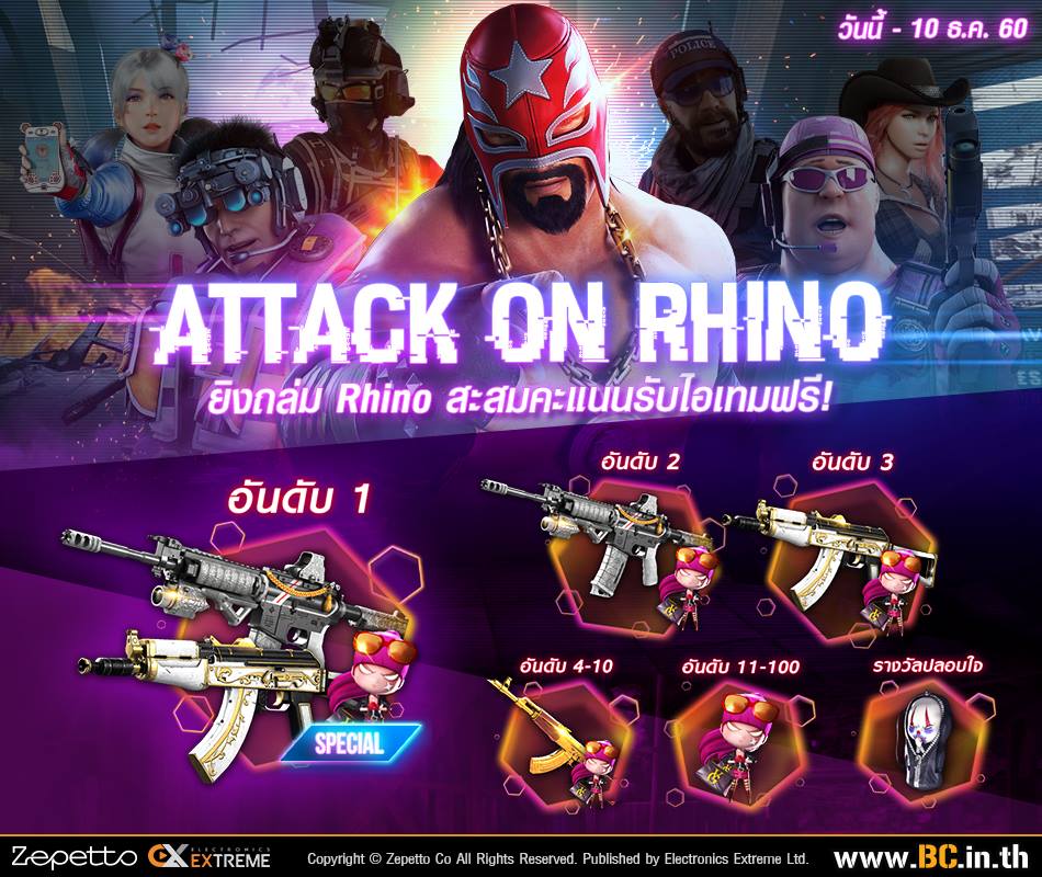 Battle carnival ชวนคุณมาถล่ม Rhino สะสมคะแนนแลกไอเทมฟรี!