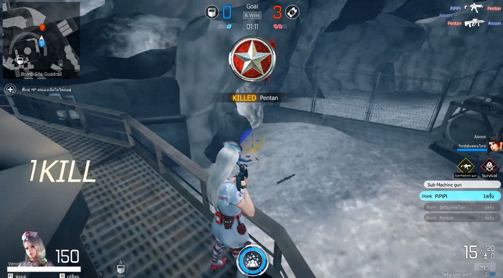 ที่ใช้ในด่าน แนะนำเป็นสไนเปอร์ เพราะ Veronica จะค่อนไปทางสายซัพพอร์ตมากกว่า การที่อยู่ไกลๆ คอยส่องยิงสวยๆ และรอสกิลคูลดาวน์กดฮีลเพื่อนให้ทันตลอดเกมหรือจะคอยแอสซิสให้เพื่อนนั้นสำคัญกว่าการเก็บแต้มคิลแบบบ้าคลั่ง