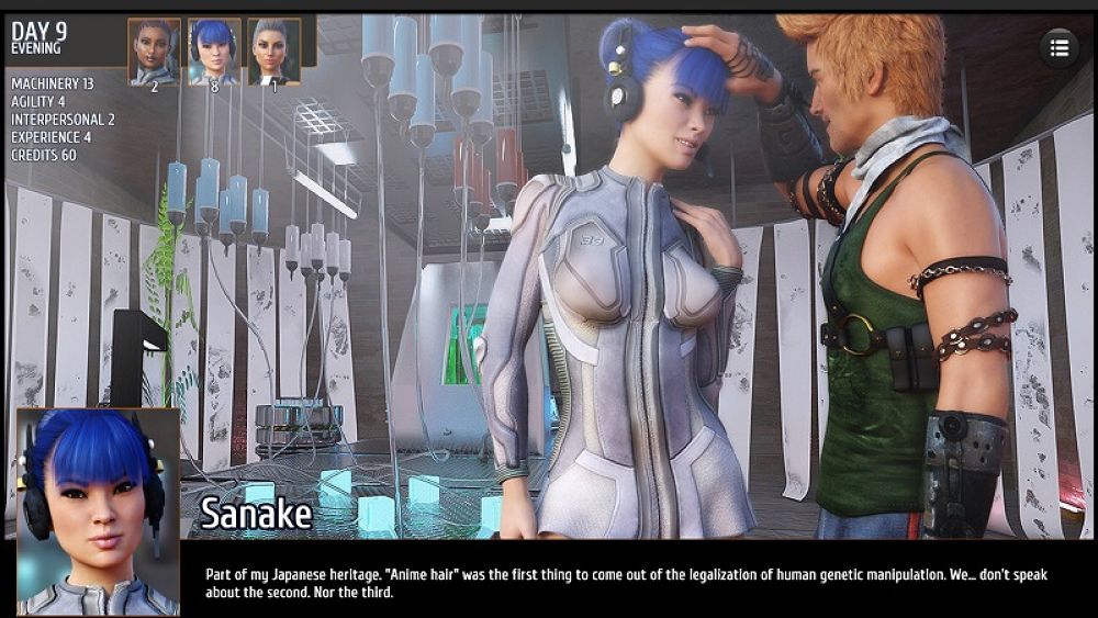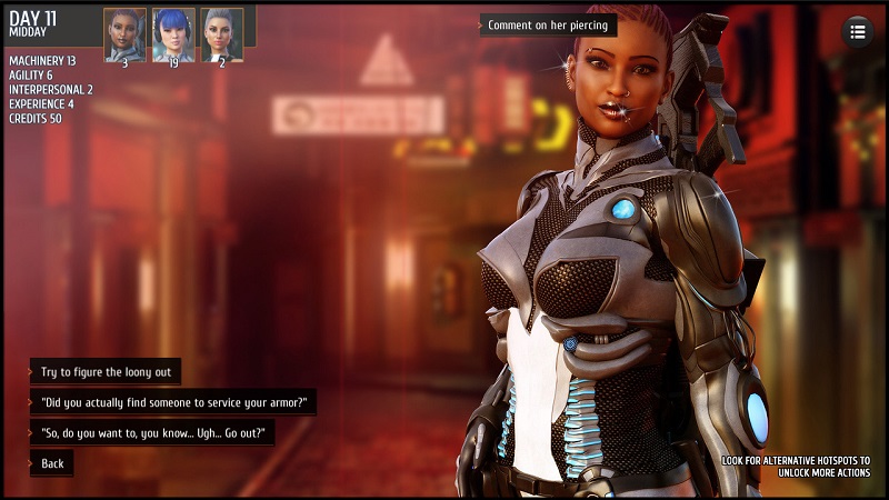 มิหนำซ้ำธีมของเรื่องที่นำเสนอความเป็นไซเบอร์พังค์ บางครั้งการตอบคำถามก็ช่วยเพิ่มค่าสถานะของเราอีกด้วย อาทิ Machinery (ชิ้นส่วนของเครื่องจักร), Agility (ความว่องไว), Interpersonal (ความสัมพันธ์ระหว่างบุคคล), Experience (ประสบการณ์) และ Credits (ฐานะ) เป็นต้น