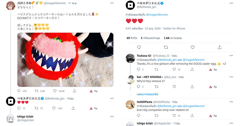 Bethesda มอบตุ๊กตาสุดน่ารักน่าชัง (!?) ให้กับน้องหมา Korone วีทูบเบอร์สาวญี่ปุ่นในสังกัด Hololive