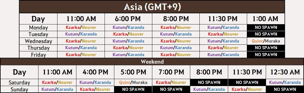 นอกจากนี้ยังมีการเพิ่ม World Boss สองตัวประกอบไปด้วย Muraka และ Quint ส่วนต่อไปนี้เป็นตารางการเกิดของบอสแต่ละตัว รายละเอียดเป็นตามภาพด้านล่างได้เลยค่ะ
