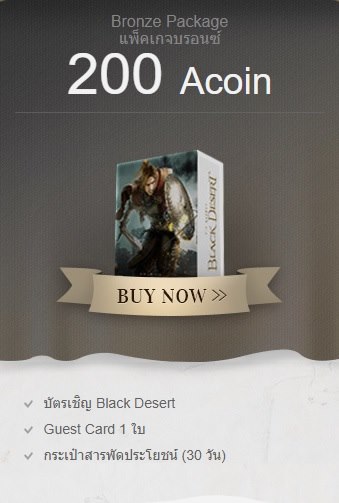 สิ้นสุดการทดสอบตัวเกมในช่วง Closed Beta ไปแล้วสำหรับ Black Desert เกมแนว Action MMORPG สุดมันส์จากทีมผู้พัฒนา Pearl Abyss ล่าสุดตอนนี้มีข้อมูลอัพเดทกันเล็กน้อยค่ะ เพราะมีการเพิ่มแพ็คเกจบรอนซ์ [Bronze Package] เข้ามา สนนราคาอยู่ที่ 200 Acoin หรือตีเป็นเงินไทยก็ 200 บาท โดยภายในชุดนี้ประกอบไปด้วย สิทธิ์เข้าเล่นเกม ( ไม่ได้รับสิทธิ์เข้าเล่นก่อนล่วงหน้าเหมือนแพ็คเกจอื่นๆ ), บัตรเชิญผู้เล่นคนอื่น 1 ใบ ( เล่นฟรี 7 วัน ) และ VIP 30 วัน ชุดนี้ซื้อแล้วสามารถเล่นได้ถาวรเลยนะคะ ถามว่าคุ้มค่าสำหรับคนที่อยากจะลองเล่นไหม!? อาเจ๊นัทตอบเลยว่าคุ้มค่ามั๊กๆ เพราะราคา VIP 30 วันก็เกิน 200 บาทแล้วเธอว์ ถือว่าเป็นอีกหนึ่งช่องทางดีๆ สำหรับคนที่อยากจะลองเล่นเกมนี้แต่กำลังทรัพย์ในช่วงนี้จางๆ เพราะเก็บเงินไปเที่ยวปีใหม่ หรือ ซื้อเกม Steam ที่ลดราคา เป็นต้น ดูรายละเอียดเพิ่มเติมได้ที่ คลิ๊กที่นี่