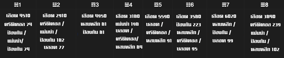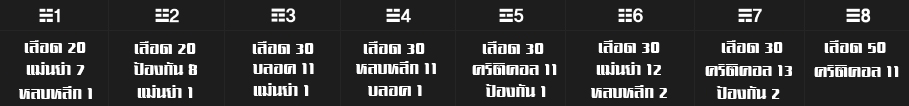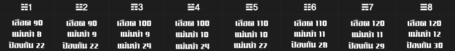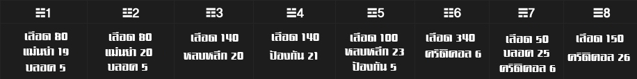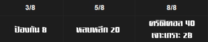 โบนัสเมื่อสวมใส่ตามจำนวนชิ้น 3,5,และ 8ชิ้น