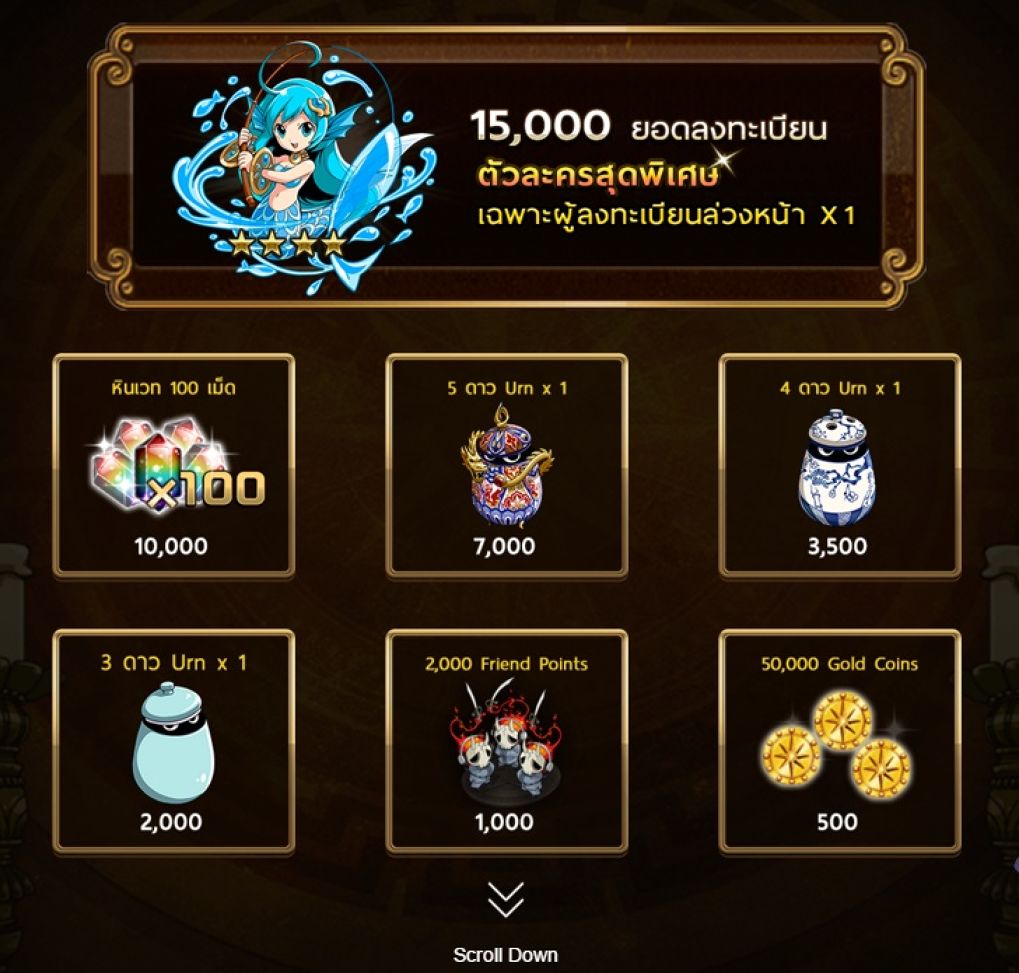 ?? : อย่าเพิ่งท้อใจไป หากคุณสมัคร Pre-Register วันนี้! ทางทีมงานให้เพชร 25 เม็ดไปหมุนกาฉะกันฟรีๆ ได้ตัวดีตัวแย่ก็แล้วแต่คุณ แต่รับประกันว่า ช่วงต้นเกมเกมง่ายยย อย่างกับปอกกล้วยเข้าปากแน่นอน และสามารถรับเพิ่มจากการสุ่มได้ทุกวันด้วยนะ!