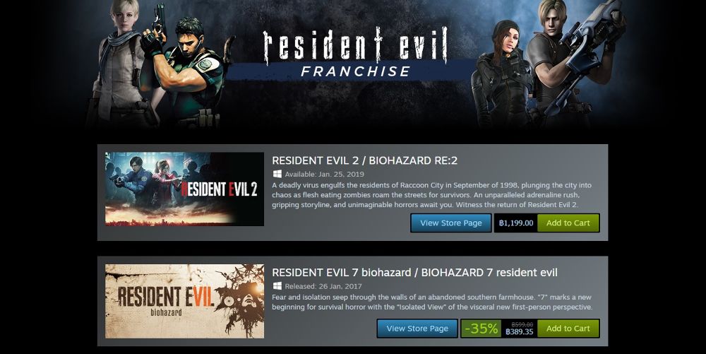 ลดราคาซีรีส์ Resident Evil ทุกภาคบน Steam สูงสุด 87% เพื่อต้อนรับการมาของ Resident Evil 2 โดยอีเว้นท์ลดราคาในครั้งนี้จะสิ้นสุดในวันที่ 8 มกราคมที่จะถึงนี้ค่ะ ยกตัวอย่าง