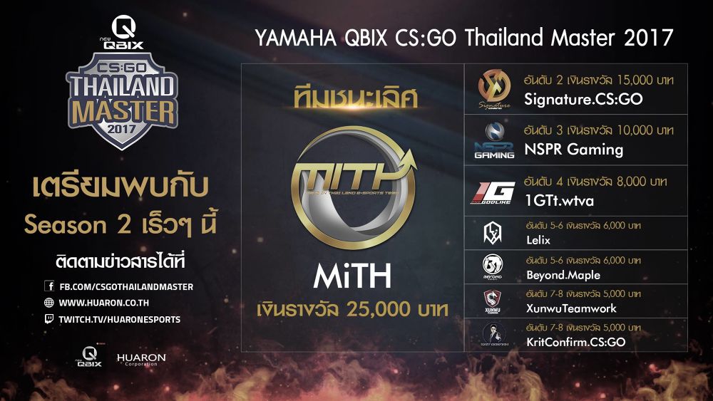 - ทีมที่สามารถชนะแชมป์ Season 1 MiTH รับเงินรางวัลเพิ่มอีก 10,000 บาท