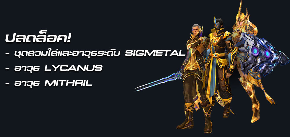 เค้าขยาย Max Level ตัวละครถึงเลเวล 139 แถมยังปลดล็อคชุดที่สวมใส่ - อาวุธระดับ SIGMetal , อาวุธ Lycanus และอาวุธ Mithril เท่านั้นยังไม่พอมีดันเจี้ยนเปิดใหม่ถึง 3 ดันเจี้ยน ติดตามรายละเอียดเพิ่มเติมได้ที่ >>