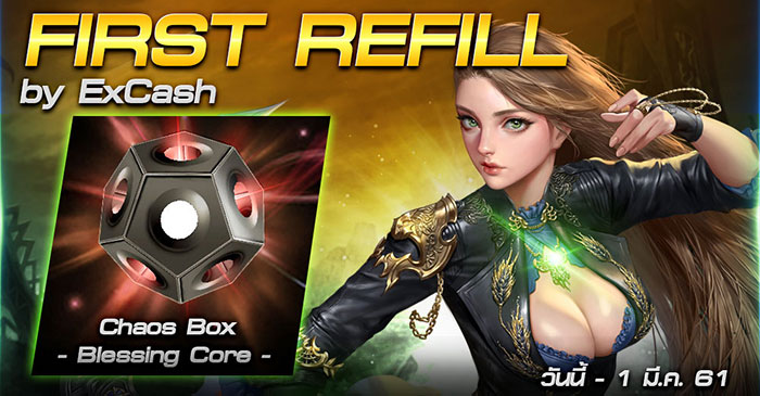 ต่อด้วยโปรโมชั่น First Refill ประจำเดือนกุมภาพันธ์ การเติมเงินจะไม่เสียเปล่าอีกต่อไป เมื่อเติมเงินผ่านบัตร ExCash ด้วยบัตรราคา 500 บาท ในช่วงโปรโมชั่นรับไอเทมเพิ่มฟรีไปเลย! ตั้งแต่วันนี้ - 1 มีนาคม 2561