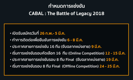 Cabal เปิดศึกการแข่งขันรายการแรกแห่งปี Cabal The Battle of Legacy 2018!!