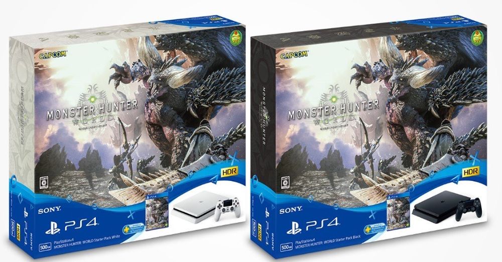 ส่วนใครที่ยังไม่มีเครื่อง PlayStation 4 ทาง Capcom ก็เผยชุด Starter Edition ซึ่งประกอบไปด้วยเครื่อง PlayStation 4 Slim จะมีเครื่องสีขาว Glacier White และ สีดำ Jet Black ภายในชุดนี้ก็จะมีตัวเกม Monster Hunter: World ให้ด้วย สนนราคาชุดนี้อยู่ที่ราวๆ 35,980 เยน หรือตีเป็นเงินไทยก็อยู่ที่ประมาณ 12,500 บาท นอกจากนี้ยังจะวางจำหน่าย DualShock 4 สีแดงลาย Rathalos Edition สนนราคาอยู่ที่ราวๆ 6,480 เยน หรือตีเป็นเงินไทยก็อยู่ที่ประมาณ 2,500 บาท โดยสินค้าทั้งสองตัวจะเริ่มวางจำหน่ายในวันที่ 26 มกราคมที่จะถึงนี้